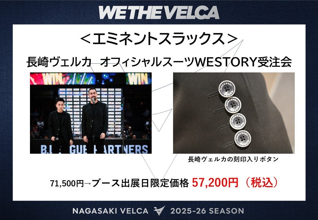 スーツのボタンには長崎ヴェルカの刻印が入った特注品です。