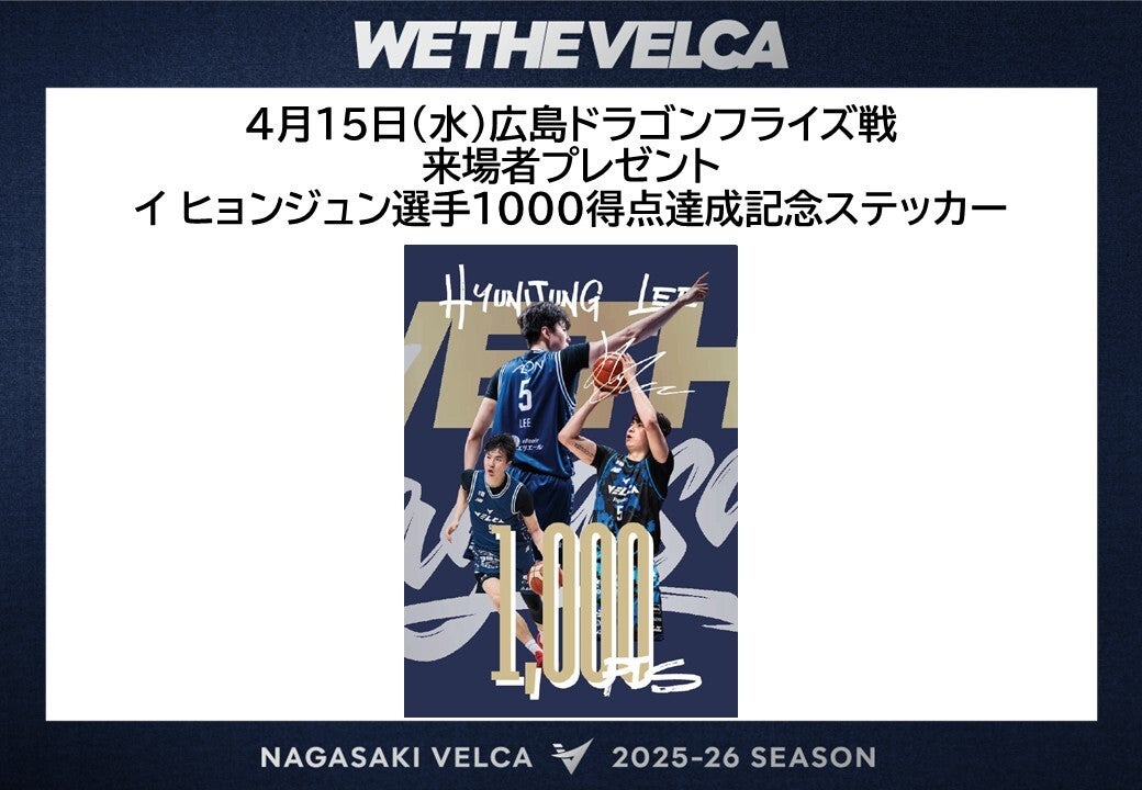 来場者全員にイ ヒョンジュン選手1000得点達成記念ステッカーをプレゼント!
