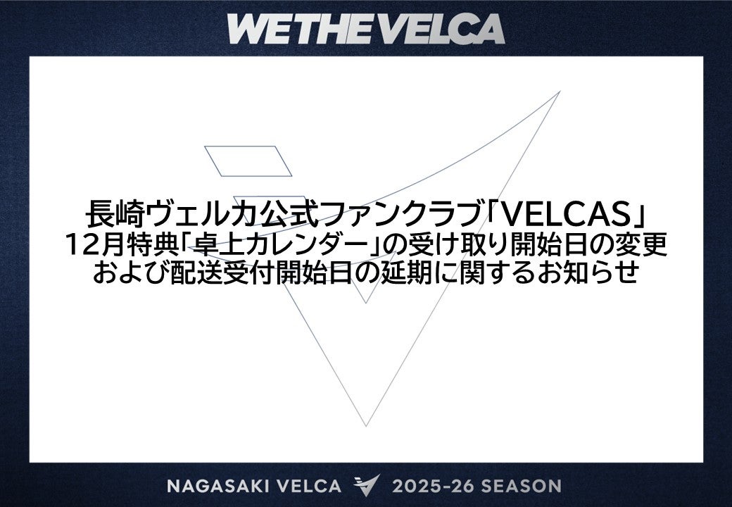 【12/18更新】長崎ヴェルカ公式ファンクラブ「VELCAS」12月特典「卓上カレンダー」の受け取り開始日の変更および配送受付開始日の延期に関するお知らせ