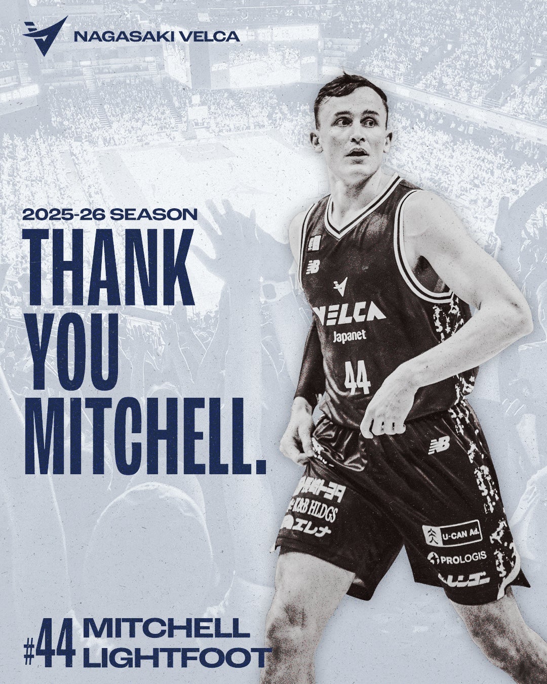 ミッチェル・ライトフット選手契約解除のお知らせ