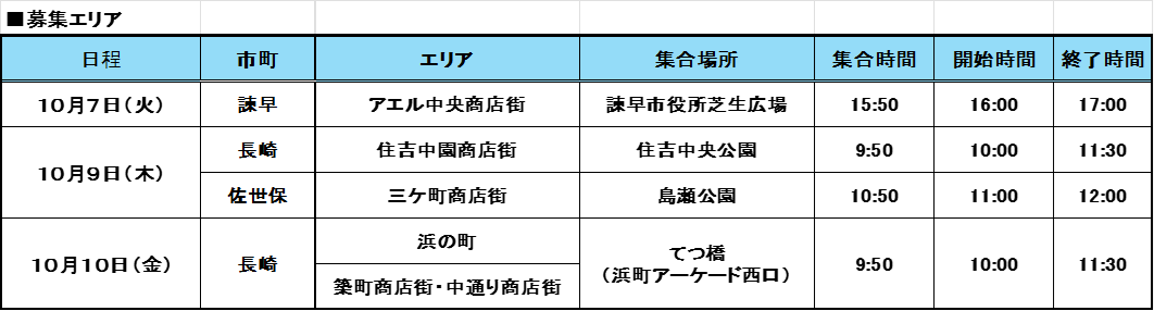 ※永昌東町商店街/諫早駅、四ヶ町商店街は別途実施を予定しております。