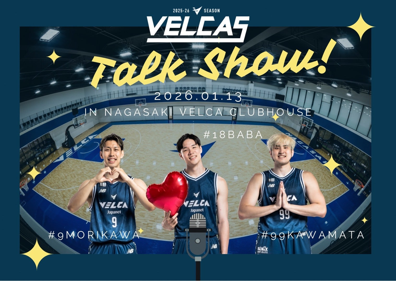 1月13日(火)に長崎ヴェルカファンクラブ「VELCAS」会員限定トークショーの開催が決定いたしました。