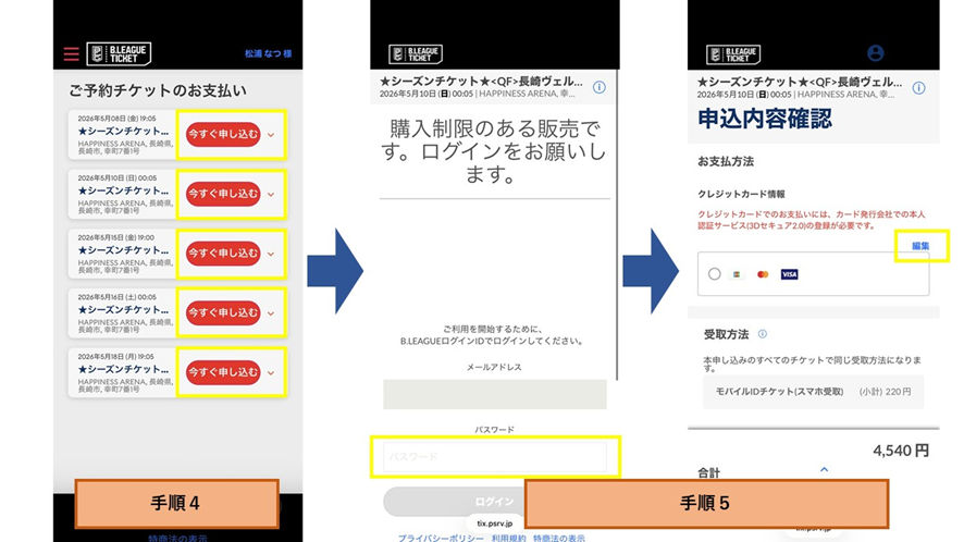 →⚠️【手順4】で画面にチケットが表示されない場合 をご確認ください。