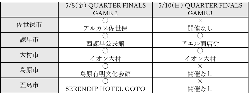 ※2戦先勝方式のため、諫早・大村会場でのGAME3は、GAME 1・2の結果(1勝1敗の場合のみ)により開催いたします。