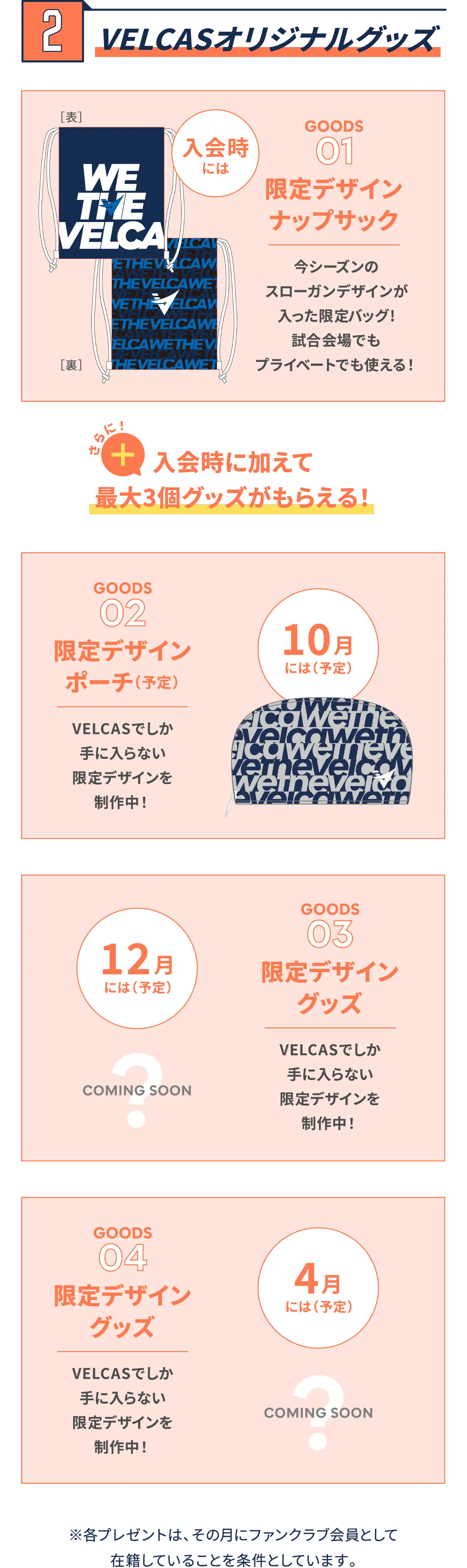 月額300円の費用で、限定動画、限定イベント、VELCASオリジナルグッズのプレゼント、チケット先行販売など、記載されているすべてのコンテンツや特典にアクセスできます。