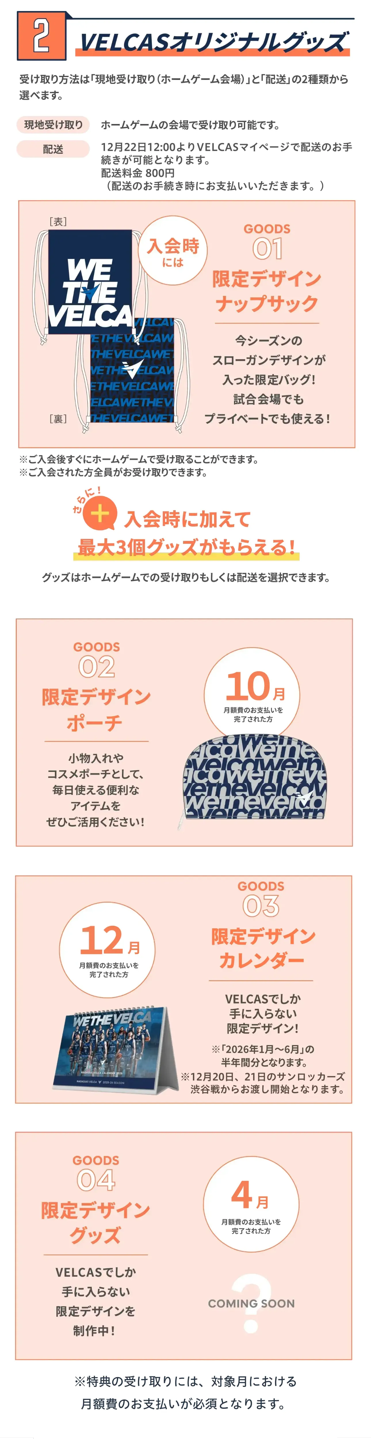 月額300円の費用で、限定動画、限定イベント、VELCASオリジナルグッズのプレゼント、チケット先行販売など、記載されているすべてのコンテンツや特典にアクセスできます。